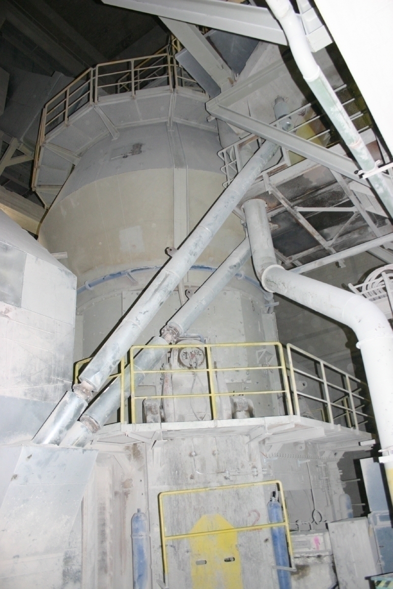 The feed material used for cement production here is calcareous marl; this is extracted at a rate of up to 10 000 t/d at two locations in the Höver quarry. Excavators feed it into high-capacity mobile crushers. The crushed material is then conveyed on belt conveyors to two feed material blending beds, which use the chevron method (Fig. 3). This marl has a residual moisture content of around 14 %; fluctuations in composition can be corrected using sand, serox or an iron component. The material is fed to the raw materials mill, a Loesche vertical roller mill, where it is comminuted and simultaneously dried using waste heat from the heat exchanger. The raw meal is separated out on a bag filter and then routed to the 10 000 t raw meal silo. From here, it is conveyed on bucket conveyors to the preheater, which is of the twin-train four-stage type (Fig. 4). The feed material has already been deacidified to a high percentage when it leaves the preheater. Residual deacidification and sintering take place in a KHD rotary kiln. Life-expired tyres and filter-press cake are fed at the kiln inlet; the main burner combusts coal, shredder fluff and animal meal. The substitute fuels rate is currently around 70 %. Holcim, with Geocycle, is well positioned for expansion of the use of substitute fuels.