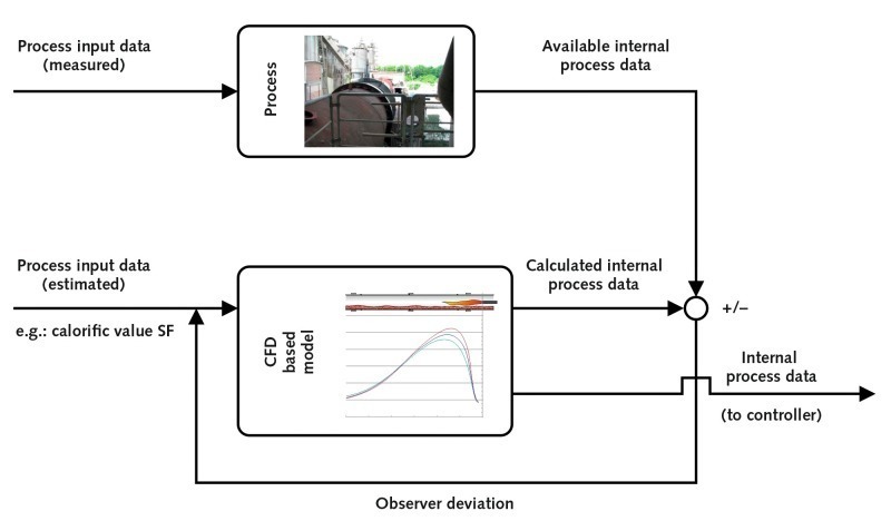 In addition, due to the predictions of the internal state variables the system provided the operating personnel with valuable information from the process independent of the control, which had not previously been available (see Fig. 14).