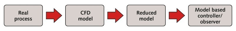 Because a dynamic simulation of the complex CFD model requires a great deal of calculation time, such a model cannot be used directly for real time control. The challenge connected with developing the model supported control system is transferring the adapted CFD model into a model of the thermal clinker firing process that is both sufficiently accurate and capable of real time performance. To do this, in an intermediate step the model complexity is reduced to a simplified cell model.