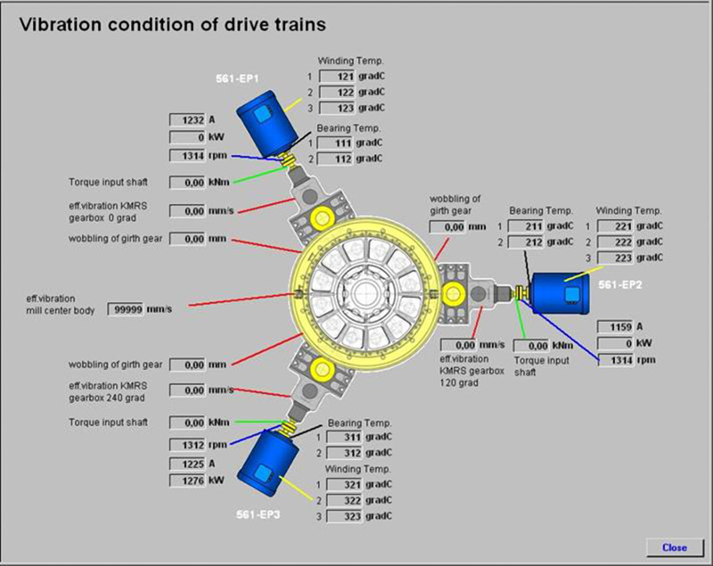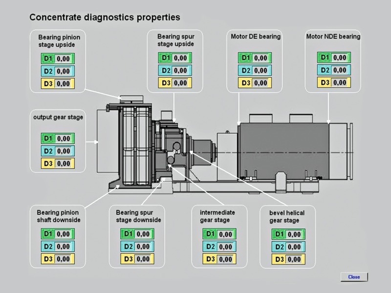 In the cement industry well known “diagnosis pictures” (Fig. 4) from Cemat are specially adapted to the MultipleDrive functionality. The diagnostic dialog shows the inputs and outputs of the block, including status information, interlocking conditions, and faults. It also permits the modification of process parameters. The operator receives comprehensive information about the MultipleDrive system in one picture and thus he is informed at first sight.
