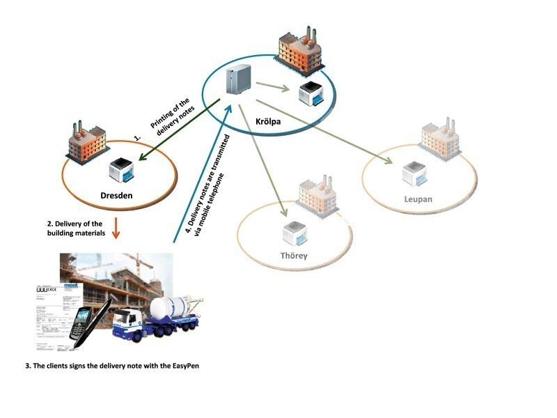 Anke Adler, the IT manager at maxit Baustoffwerke GmbH, said “Up until now, whenever customers have rung up to enquire about their delivery, we’ve not been able to give them any information. We’ve had to try and contact the driver by phone and ask him to fax the delivery note. That was terribly expensive and customers were dissatisfied.” Each day, maxit was faced with needing to get back about 700 delivery notes with customer signatures from drivers promptly so that they could be archived, and recorded centrally on its computer system at its Krölpa plant so that the orders could be passed on to its billing department. The following major problems demanded an innovative solution: