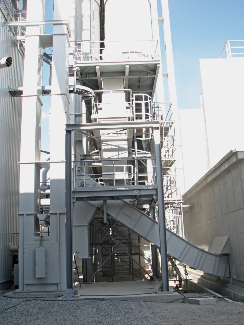 The gasification process ends in a cooling zone that cools down the ash produced and the remaining lime. This concept was taken over from lime burning technology explained the planner, who is also known by colleagues as “Mr. Ecoloop”. The cooling zone is located at the bottom of the reactor where the gasifying air is fed into the system. “The counterflowing air therefore cools down the moving bed of bulk material, including everything that is not gasifiable, before it reaches the outlet. During this process, the gas itself is heated up to reaction temperature and is thus supplied to the gasification process in a very energy-efficient way – like in a preheater”, said Möller.