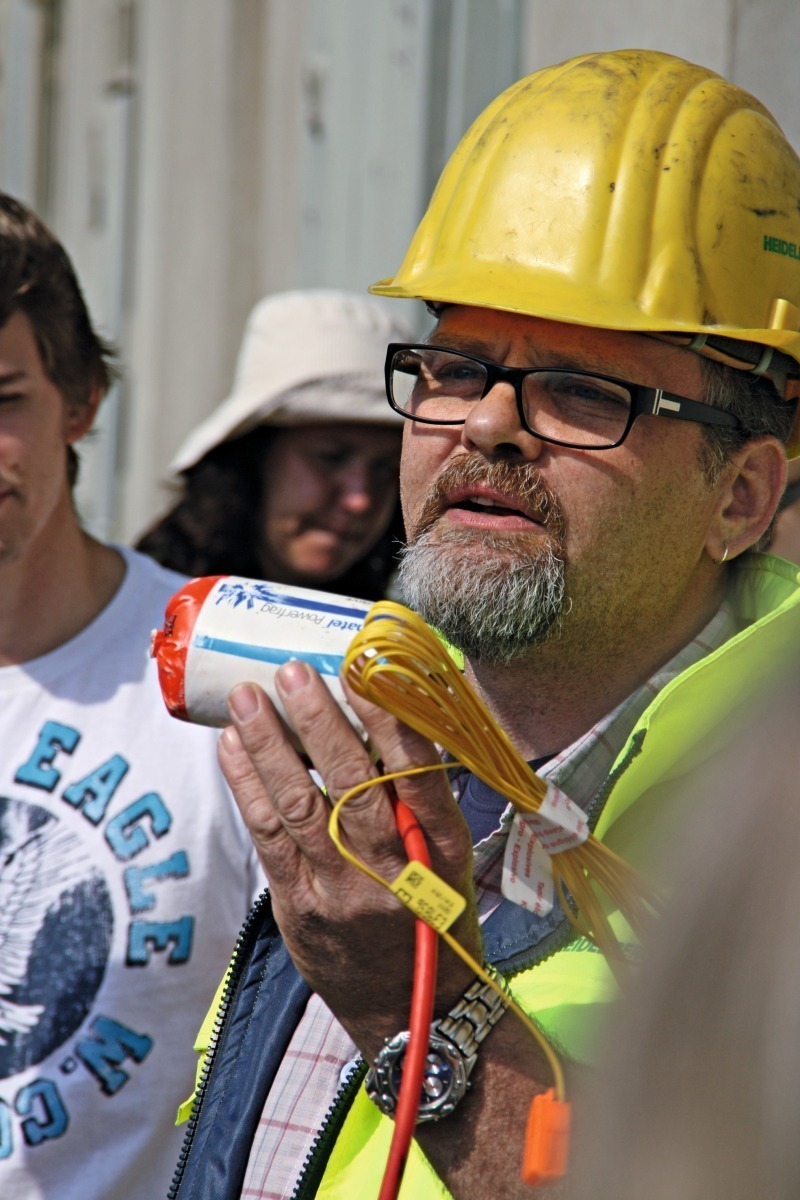 The cement industry is a fascinating, highly varied and extremely demanding sector. Nearly 50 future male and female engineering students from the fields of process- and mechanical engineering, in addition to other related disciplines, saw this at first hand during the 2012 ZKG Technical Excursion. This year’s host was HeidelbergCement; at the company’s Leimen plant and at its main offices in Heidelberg the students were able to gain both theoretical and practical insights into cement production. The individual process operations were examined jointly with industrial partners, and were then discussed in depth. The first item on the agenda this year was a visit to the Nussloch quarry (Fig. 1). Uwe Klein (HeidelbergCement) introduced the interested participants to various blasting-based methods for the extraction of mineral resources (Fig. 2). Then: so much for theory, on to practical matters: the visitors were able to observe a real-life blasting operation. Melanie Meier (Geopark Ranger) then focussed on local geology, flora and fauna. Biodiversity, renaturing and sustainable quarry management are all aspects high on the agenda at HeidelbergCement, a globally active cement group. The visit progressed from the quarry to the plant, where the participants took a guided tour along the production chain in three groups, led by Wilfried Fendler, Herwig Marx and Wolfgang Bender.
