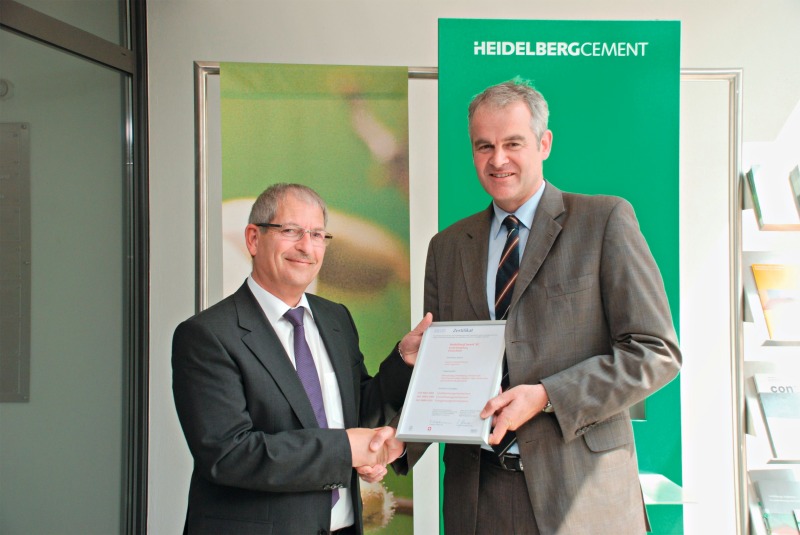 On 23.05.2012 Christian Knell, General Manager Germany, received the certificate for the integrated management system of HeidelbergCement from Roland Glauser (Fig. left), Managing Director of the Swiss Association for Quality and Management Systems SQS. This certificate confirms that HeidelbergCement fulfil the criteria of the quality and environmental management system (ISO 9001 and ISO 14001) and of the recently introduced energy management system according to ISO 50001. The certificate is for the German business lines cement, lime and gypsum, for the HeidelbergCement Baustoffe für...