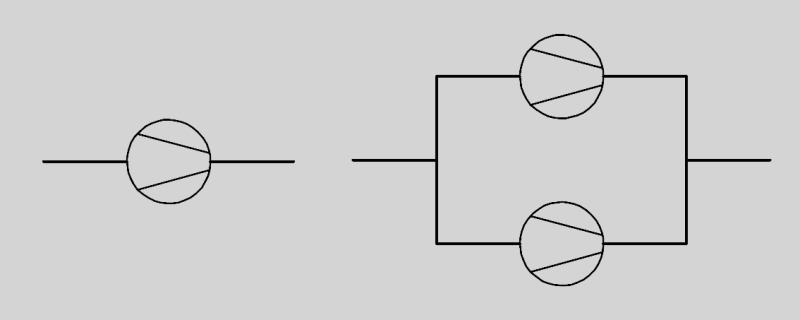 Until about five years ago the great rotor mass of large centrifugal fans would have required the use of expensive slide bearings. For this reason, in the past two fans were usually used in parallel operation (Fig. 2).