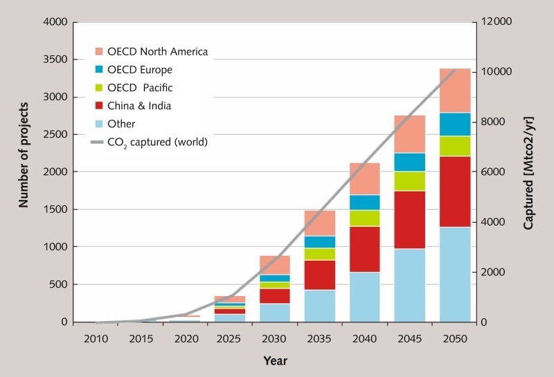 Naturally, the CO2 emissions of the cement industry not only depend on the implemented reduction measures but also on the actual production level. Contrary to the moderate projections of up to 4400 Mta, other forecasts predict significantly higher figures: for example the IDDRI (Institut de Développement Durable et des Relations Internationales), expects 5000 Mta in 2050 and a study by WWF/Lafarge predicts 5500 Mta [2]. Of course, the production volume has implications for the CO2 reduction measures. A higher volume means that a far greater amount of alternative fuel or clinker substitute has to be obtained. It is unclear what consequences larger production volumes would have on the age of cement plants and thus on their energy efficiency. In the case of CCS, numerous plants would have to be equipped with the technology. This raises the question of whether the planned investments would be sufficient and where the finances for the higher expenses should come from. Ultimately, the ratios of the individual CO2 reduction measures will very probably shift away from those envisaged in an assessment by Mott MacDonald [3].