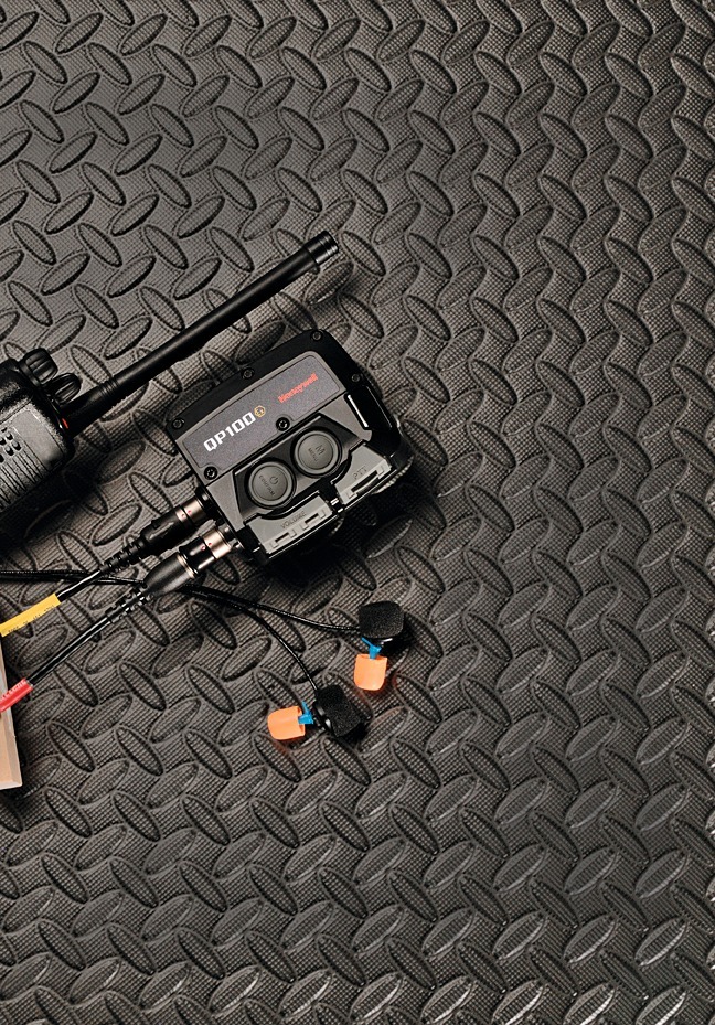 A connection to the radio enables the user to listen to incoming messages, even in very noisy work situations without compromising sound quality. Microphones fitted into the earplugs allow the user to hear his or her own voice so that the user can speak in a normal voice, while the person on the other walkie-talkie can hear without loss of quality and free from outside noise.