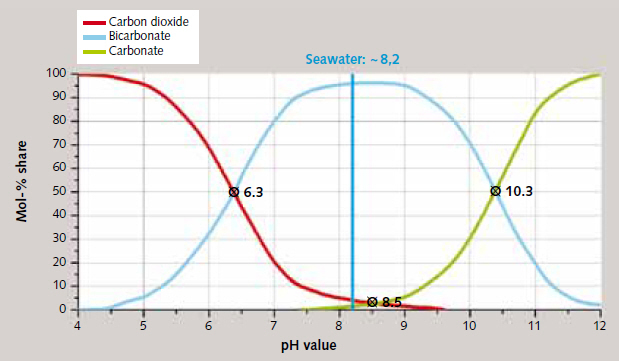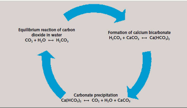 The chemical basis of these processes is provided by lime/carbonic acid equilibrium, which defines the pH-dependent equilibrium between the various carbon species of carbon dioxide (CO₂), hydrogen carbonate (HCO₃-) and carbonate (CO₃2-), and determines the lime-removing or lime-dissolving character of the water (Figure 2).