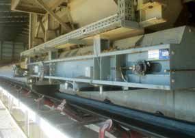 When this option is selected the BEL C system can be implemented with the installation of a travelling weight feeder (Fig. 4) installed on the top of the longitudinal exit conveyor belt at the transversal conveyor belt discharge as well as with frequency converters for all motors (trolley translation, chain, belt conveyor, weight feeder).