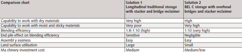 Storage of great volumes of raw materials in limited spaces is an important requirement that becomes more relevant when existing plants have to be renovated. Bedeschi, a producer of a complete line of stackers and reclaimers that range from bucket wheel and scraper reclaimers for use with dry material, to bucket reclaimers that can be used with any type of raw materials, but especially with moist, plastic and sticky ones, has developed a system named BEL C which is able to: