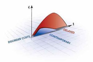 It is surely an indisputable fact that disruptions result in the investment of time and money. However, the actual economic dilemma only becomes truly visible in an extended analysis. From our experience, we know that between 5 and 50 % of the total resultant costs are directly attributable to the disruption. A further 15 to 50 % of the resultant costs are indirect expenses arising in the immediate proximity of the disruption. But so-called consequential costs have by far the greatest impact, accounting for up to 80 % of the total resultant costs. And it is not unusual for these consequential costs to affect every business segment of the company. One decisive factor for the cost development is the point of time that a company reacts to a disruption. A delayed reaction to the disruption results in an increase in resultant costs. This consideration underlines the importance of skilful disruption management.