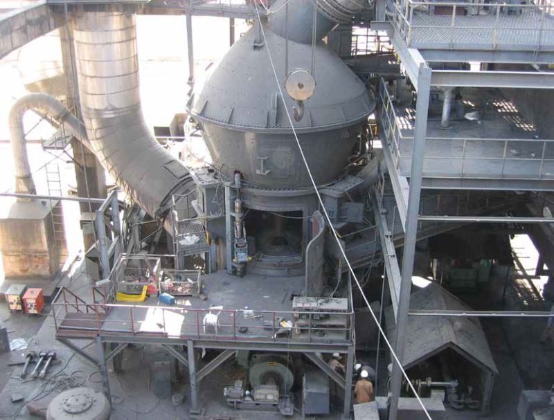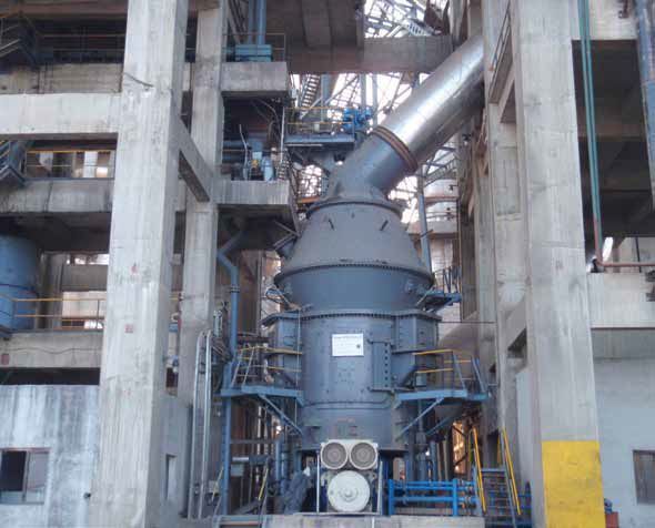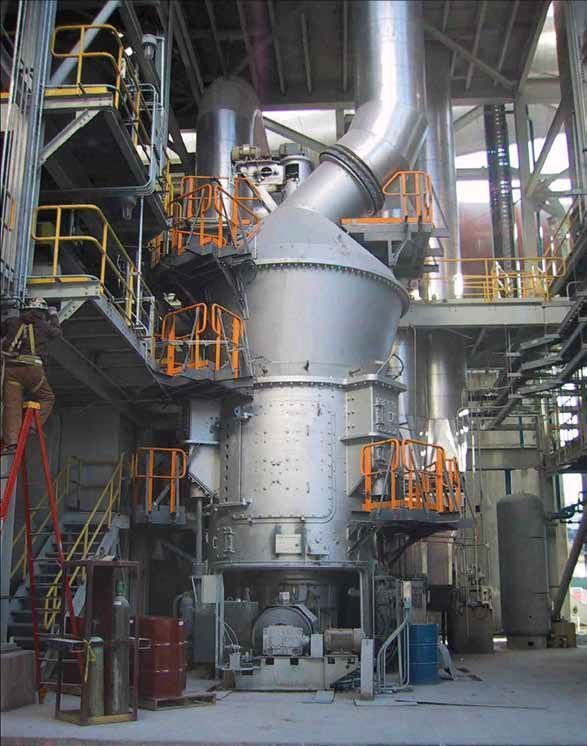 Petcoke with a Hardgrove index of 35 is ground in an MPS 250 BK (refer to Figure 5). This mill is installed in the US and in operation since 2002. The production rate is 24 t/h with a power consumption of 16.8 kWh/t at a fineness of 5 % R0.090 mm. As second product coal is ground to 8.5 % R0.090 mm with a production rate of 34 t/h and 7.3 kWh/t specific energy consumption for the mill main motor.