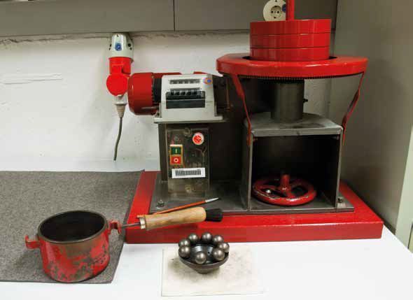 An alternative to a grinding test performed in a pilot plant with an MPS 40 B is the well-known Hardgrove grindability procedure (refer to Figure 4). The Hardgrove Index gives less information than a grinding test in a pilot plant provides. The specific wear rate for predicting the lifetime of roller tires can – by performing a Hardgrove Index – only be based on assumptions. The small quantity of material used for the test requires the highest precision during the sampling procedure. Despite all constraints a resilient correlation between Hardgrove indices and MPS mill throughputs has been released for mill rating. Only in lignite grinding a precise design has to be based on a grinding test in the pilot plant.