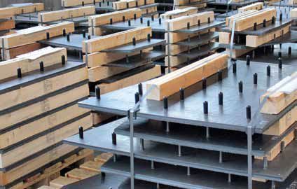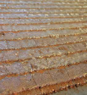 First, 10-millimetre metal plates are coated with two layers of 10 mm hard facing of the Kjellberg quality Fidur 10/65. The Fidur surfacing equipment (Fig. 1) can coat plates up to a size of 1500 x 3000 mm (4.5 m2). The welding is done with an open arc, to which a flux is added to achieve the required material properties. For each square meter of sheeting, 30 kg of welding wire type KF S2 and 50 kg of flux are used. The flux is a special mixture of three components produced by Kjellberg Finsterwalde specifically for this type of load. Alternatively, the significantly more expensive flux-cored welding procedure could also be used for this purpose.