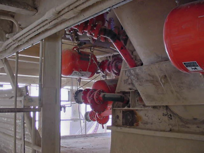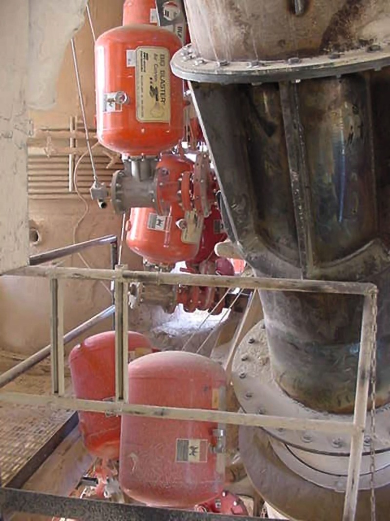 All of the air cannons in the main production line network are equipped with the Martin Engineering XHV Valve, designed specifically to deliver premium performance and long service life in preheater towers, clinker coolers and other high-temperature applications. The negative pressure-firing valve (Fig. 3) was developed to provide reliable operation and long service life in challenging applications.