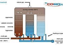 Conversion of the gases of NO and NO2 into HNO3 occurs in the following sequence: