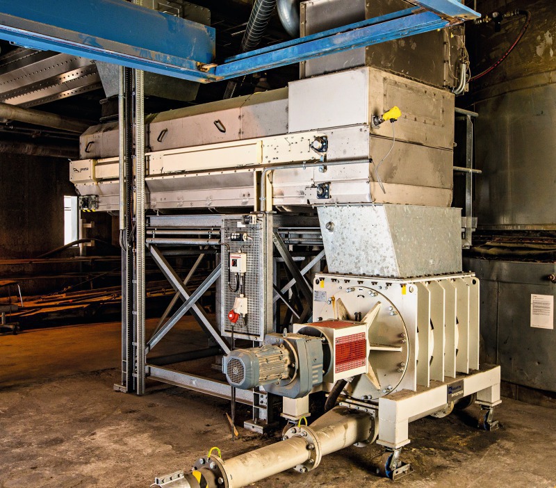 The heart of the line for the main burner is a pipe conveyor with a diameter of 200 mm and a length of 201 m. It achieves a conveying capacity of twelve tons per hour and is equipped with a spillage scraper conveyor for minimising the cleaning, as well as a dedusting filter. The fuel feed of the moving floor in the storehouse to the pipe conveyor is carried out by a screw conveyor. The feeding system in the main burner building includes an intermediate hopper with a volume of ten cubic metres, also with activator and double discharge screw conveyor and a weigh belt feeder. In addition, there is a pneumatic conveying line with blower and rotary vane feeder.