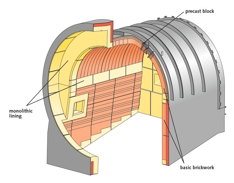 Of course, increasing cost pressures and economic considerations are dominant whenever the refractory lining of a cement plant is involved. Even though the basic lining of a kiln hood appears to be more expensive than a conventional solution with alumina products at first sight, the advantages during normal operation with longer service life soon become apparent. Moreover, reductions in maintenance costs are achieved during the longer life cycles.