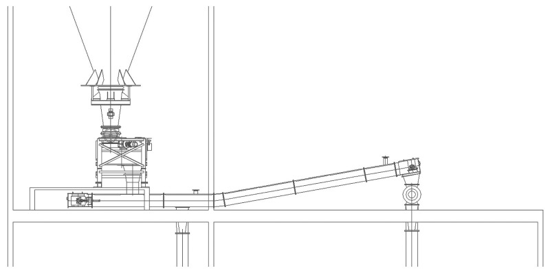The installation supplied by FLSmidth Pfister GmbH consists of a vibrating hopper (1 m3), a shut-off gate and a rotor weighfeeders Pfister® TRW-K (4.18/5). The installation is a raw coal system to feed the coal mill. It consists of a 70 m³ hopper where the raw coal is stored. The vibrating hopper ensures the constant flow of the material. Installed below there is a dosing system (rotor weighfeeder Pfister® TRW-K) and a drag chain conveyor behind the airlock at the mill inlet. The chain conveyor transports the material either to the mill inlet or to another feed point for truck transport (Fig. 2).