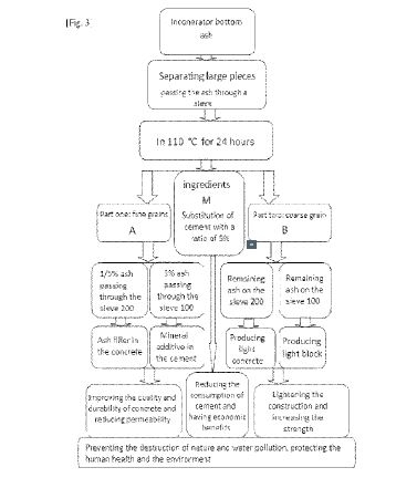 (57) The present invention relates to the field of building materials, and more particularly to cement concrete mixtures used in production of roads and other traffic areas, which do not require increased environmental resistance and durability. The goal of the invention is to create a cement concrete mixture using a municipal solid waste incinerator bottom ash filler having sufficiently good mechanical and physical characteristics, durability and low cost. Composition of cement concrete with a municipal waste slag coarse aggregate, comprising sand, cement,...