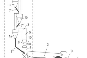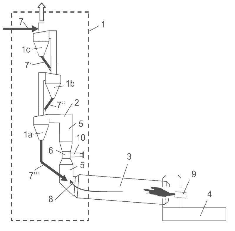 (57) The invention relates to a cement production system with a preheater for preheating the cement raw meal, a calciner for pre-calcining the preheated cement raw meal, and a rotary kiln for firing the pre-calcined cement raw meal, wherein the calciner has a riser pipe through which exhaust gases from the rotary kiln flow. The gas offtake probe is arranged in a calciner nozzle, which is formed by a nozzle-like constricted section of the riser pipe, wherein the gas offtake probe is arranged flush on the calciner nozzle of the riser pipe.