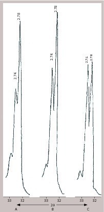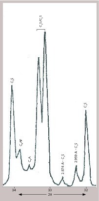 Recently attempts have also been made to utilize XRD for quality control in the cement manufacturing process. Free CaO content in the cement clinker is still regarded as an index of clinker quality. A very rapid estimation of free CaO in clinker by XRD is possible [3] and quite a number of cement plants are known to adopt this method [4]. Aldridge [5] used XRD for quantitative estimation of cement phases for prediction of cement strength applying the equation earlier formulated by Alexander [6]. Beilmann and Bruggemann have developed a method for on-line determination of clinker phases using XRD, which can be incorporated into the POLAB system for cement quality control [7].