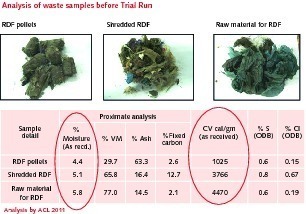 ACL therefore asked NMC to send dry segregated rejects of MSW in the form of RDF fluff/dry waste in bagged and baled forms. It was decided that for this trial run the RDF pellets would not be used as NMC did not have the requisite quantities.