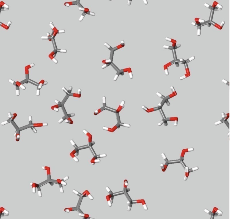 Water, glycerine, diethylene glycol (DEG) and diisopropanolamine (DIPA) assist grinding in ascending order (Figs. 10-13). Water dissociates into positive hydrogen ions and negative hydroxide ions (H2O ➝ H ∙∙∙∙ OH ➝ H+ + OH–, hydroxylation), which position themselves so that the surface polarity of the clinker is reduced. The alcohol groups (R-OH) of the grinding aids reduce the surface polarity further. The hydrocarbon parts (R, consisting of CH, CH2 and CH3) shield the polarity. The hydrocarbon parts of glycerine are small (shown in Fig. 11), of diethylene glycol moderate (Fig. 12) and of diisopropanolamine large (Fig. 13). The larger the hydrocarbon parts the smaller is the surface energy of covered cement particles and the better is the grinding effect.