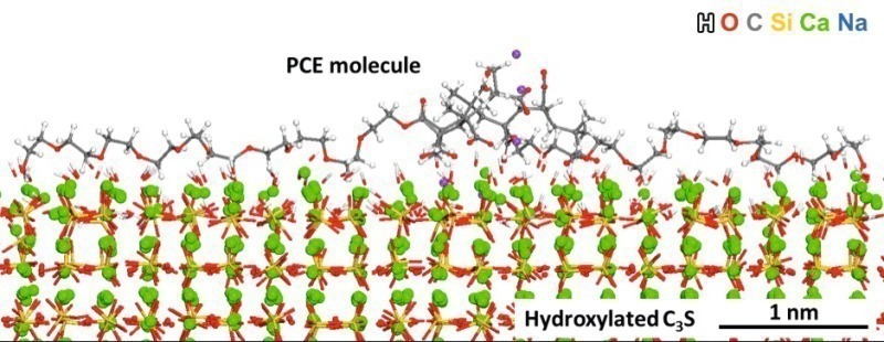 PCE molecules do not only plasticize fresh concrete through steric repulsion but also reduce agglomeration during grinding through their spatial conformation. However, the molecular mechanisms with dry cement particles are completely different from those in wet concrete.