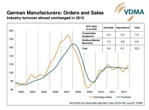 Building material facility manufacturers, however, are more sceptical. Many companies are on schedule, but large-scale orders are rare and fiercely competitive. “We therefore expect only to break even in 2015,” explains Sailer. This is equivalent to turnover of 4.3 billion €. This would see turnover come to around 13 billion € for the whole construction equipment and building