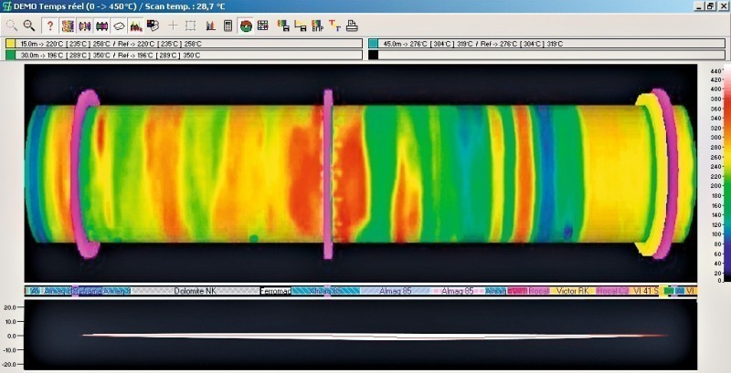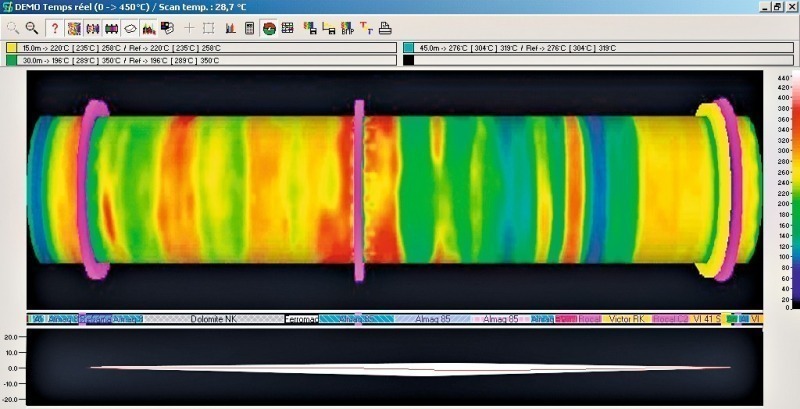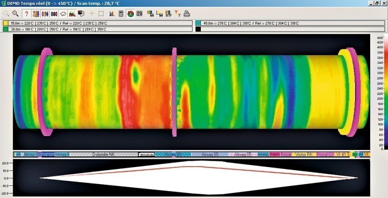 Thermal warp calculation and display is a user friendly tool which assists the operator to select the correct kiln operating settings. It also enables detection of mechanical anomalies when analysis by the kiln supplier is involved. This function was jointly developed with FCB, Lafarge and HGH. HGH’s thermal scanner is a complete diagnostic tool, which not only shows hot spot formation on kiln surface just after the fall of a single refractory brick, but warns effectively of potential risks sufficiently in advance to enable positive corrective actions to be taken. This is the key benefit that HGH Kilnscan can bring to kiln operators in cement plants.