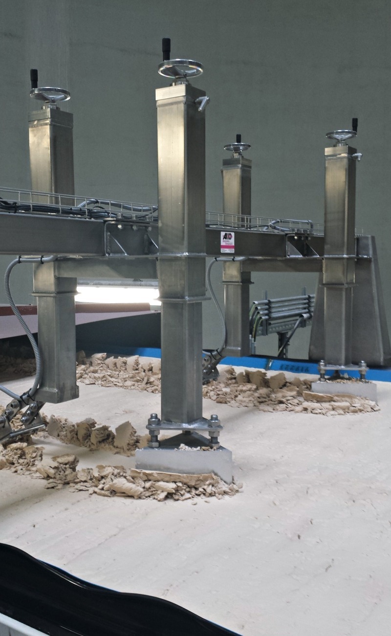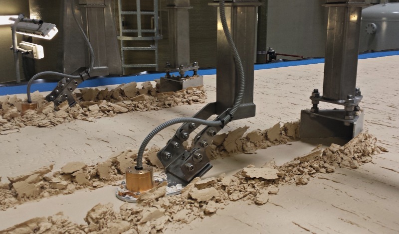 Prior experiences with ACO have shown that only one sensor on a 2.4 meter wide belt is not sufficient for an accurate moisture measurement, due to this the moisture measurement device consist of two sensors minimum (Fig. 6). On the one hand the reproducibility of data is higher and on the other hand the function of the sealing lip can be monitored as a safety function. In the case of any damages the vacuum and consequently the drying process will not work as well as required. In that case, when one sensor measures increasingly higher moisture values obviously the sealing lip has to be replaced.