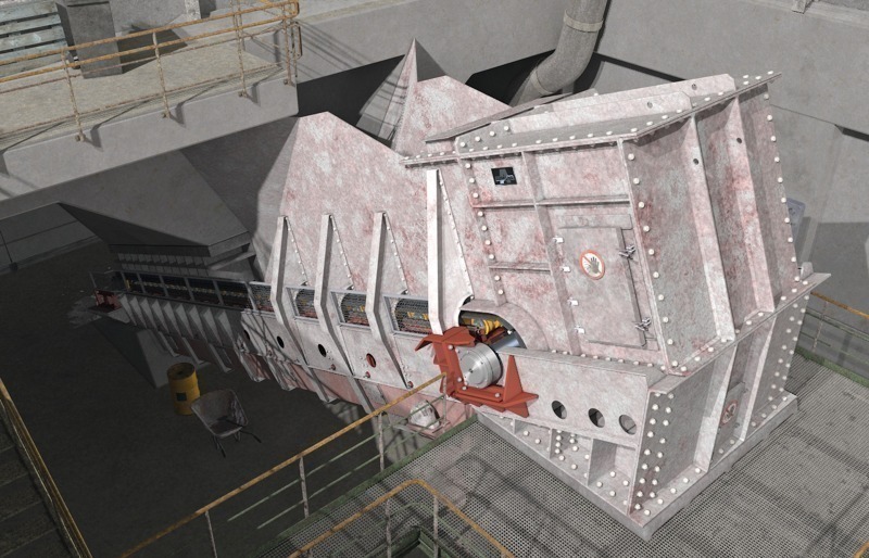 It is necessary to individually determine whether and to what extent the conveying capacity of a machine can be increased. In our experience, it is pos-sible to double the capacity, for instance by converting a round link chain bucket elevator (Fig. 2) to an Aumund central chain bucket elevator (Fig. 3). In all cases, the existing steelwork is first inspected by the planning team in order to ascertain whether a conversion is feasible. This particularly includes checking of the material feeding and the material discharge. Design programs that calculate the material conveyance and discharge characteristics are used, for instance, to simulate the manner in which the material is discharged from the buckets. The results of these analyses form the basis for the designing of the required components.
