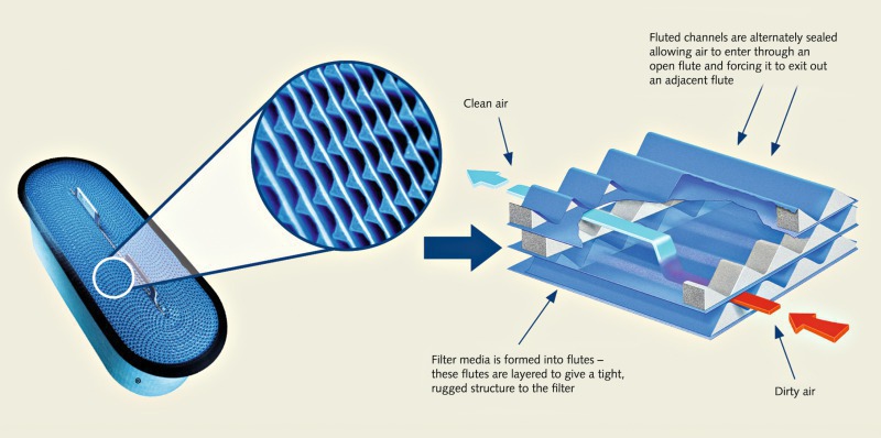 PowerCore® filter packs are the central element. The proprietary Ultra-Web® nanofibre filter medium is used here, formed into “flutes” which capture the particles without depth-loading (Figure 2). This dust collection technology is the precondition for “downsizing” compared to conventional systems featuring filter bags or cartridges.