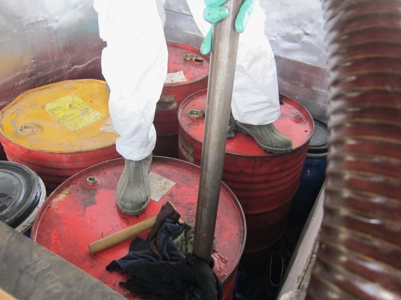 PCB-oil had been stored in a warehouse in Colombo for more than 20 years, waiting for a disposal solution to emerge (Karstensen et al., 2006). High concentration PCB-oil was kept in 60 l stainless steel drums; as well as diesel washings from the transformers’ cleaning, in 200 l steel drums. The PCB-oil was confirmed to be pyralene with an average concentration of 59 % of PCB, 36 % trichlorobenzene and 5 % tetrachlorobenzene.