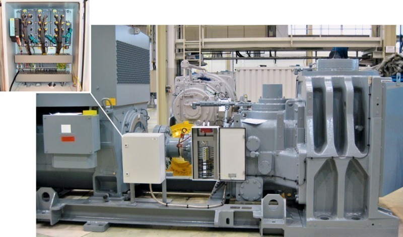 To minimize wiring costs during commissioning, in each case, all of the sensors are installed in the factory and wired through to the intermediate terminal box attached to the steel frame (Fig. 2). The intermediate terminal boxes also contain the interface nodes that digitalize all of the analog signals already after short signal cable lengths. The prewired control boxes mounted on the mechanical drive units with the interface nodes are networked using fiber-optic cables during commissioning onsite. Despite high sampling frequencies of vibration signals and a large number of channels, this allows a large bandwidth to be achieved to transfer the synchronously sampled signals to the PC used for analysis, even over considerable distances