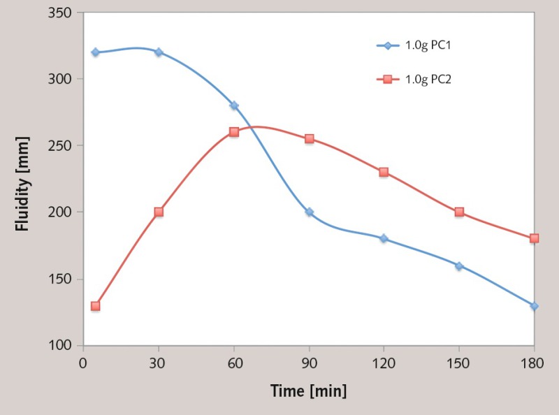 From the above discussion, it is easy to find that those PCs containing the ester group in side chain can be used to reduce the fluidity loss. It also suggests a possibility that different types of PC can be used together to improve the workability of high performance concrete.