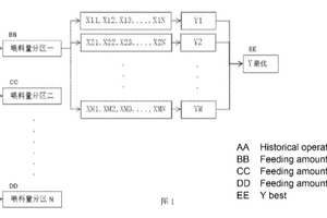 (57) An energy-saving optimization method of a cement raw material vertical mill system. Safe, convenient and reasonable auxiliary decision-making is smartly provided by a machine learning method without changing any structure and principle of a production equipment, adding additional measuring spots and affecting normal production. The method comprises: acquiring historical operational data and form multiple historical operational models, the historical operational data comprising controllable variables, the controllable variables comprising a mill milling pressure, a mill inlet vacuum, a mill outlet vacuum, a hot blast valve opening, a cold blast valve opening, a mill inlet temperature, a mill outlet temperature and a fan valve opening; dividing feeding amount partitions; sorting the historical operations of the same feeding amount partition according to the power consumption per unit, to obtain the optimal historical operational record of one feeding amount partition, and merging the optimal historical operational records of all the feeding amount partitions to form an optimal recommendation form; and acquiring optimal operational suggestion of the device according to a real-time operational condition and the optimal recommendation form.