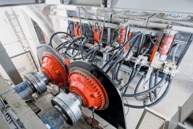 Previously, the machine builder realized the necessary pressure peaks in the process by momentary overload operation of the motors. Thanks to the significantly higher overload capability of servo motors, two asynchronous motors with 55 kW each can now be replaced by two Simotics servo motors with a rated power of just 38 kW each. With the shaft height 180 mm (SH180), these offer a very balanced ratio of output, functionality, size and price. The interaction with the converters of the modular Sinamics S120 series and the Simatic S7 300 controller required by the operator is inherently guaranteed by means of system tests at Siemens.