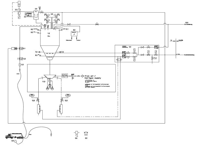 A safe switching over of the silo plant from “automatic mode” to “manual mode” during process conditions, like test run, maintenance, revision to avoid accidents must be guaranteed.