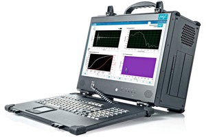 A measuring system for the characterisation of inorganic binder systems that uses the transmission method to measure the acoustic velocity of longitudinal waves in a specimen and the transmitted/received energy is described in [1]. The measuring cell consists of two brackets bearing the transmitter and receiver, and a specimen holder. In addition to the transmitter/receiver and the specimen, the acoustic path includes the contact chambers, which are filled with the couplant, and are separated from the specimen by a dividing film or layer. The transmitter is connected to the...