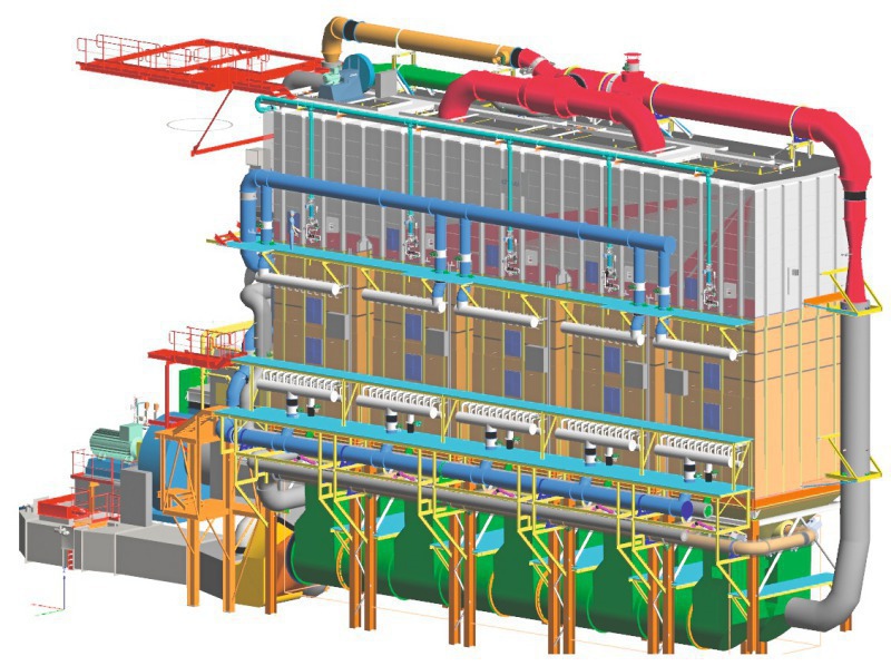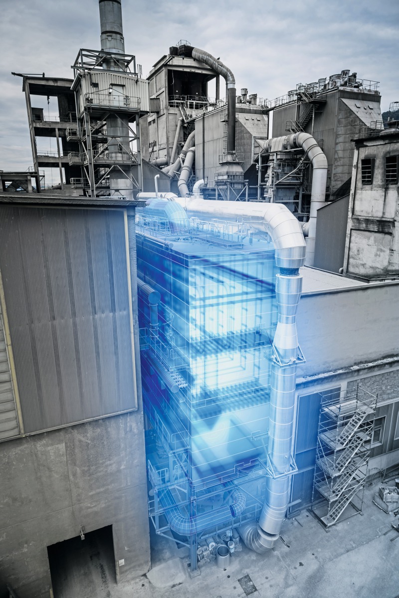 SECKLEHNER: Right. The spatial constraints were very challenging. There was no millimetre to spare in any direction. Getting everything to fit was like doing high-precision surgery. The very compact system consists of five towers: two for raw gas, two for clean gas and one for scrubbing. We had to tear down an old kiln line to make room for all of them. Even then, we only had about 30 m in length and barely 9 m in width at our disposal. Scheuch, though, did an outstanding job with this. In order to minimize pressure losses and consequentially high operating costs, it was especially important to optimize the pipe runs and to ensure good accessibility for maintenance. Again, Scheuch came up with a good solution. Nevertheless, some parts of the system had to be preassembled for positioning with a tower crane, because there was too little room for in-situ assembly. All in all, the installation work took only six months.