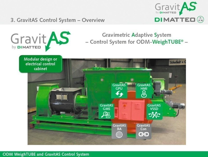 During the last years, Di Matteo developed a full modular hardware and software concept for the realization of gravimetric dosing controllers, which is only based on off-the-shelf products from widely accepted vendors of automation products. This ODM-GravitAS control system was initially developed for its usage with the revolutionary and award-winning ODM-WeighTUBE®, a novel tubular weigh feeder designed in particular for problematic secondary fuels and polyethylene granulate material (see also [1]). Since the first installation of the new feeding technology in 2010, round about 50 units of the ODM-WeighTUBE® are integrated worldwide and the applicability of the novel weighing system was expanded to conventional bulk materials, such as fly ash, iron core, raw meal, clinker, etc.