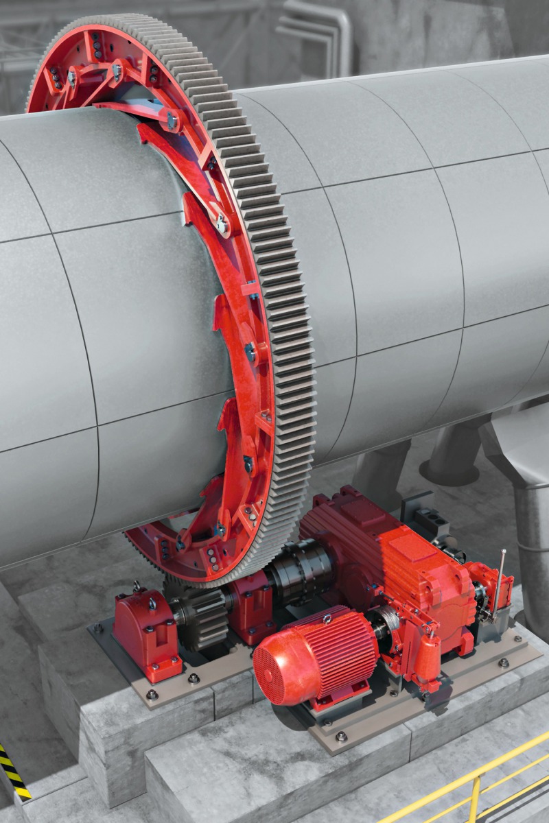 In the cement and primary industry, girth gears are needed for driving horizontal mills, dryers, rotary kilns and other large pieces of rotating equipment. Mounted on the periphery of the equipment, they transfer the drive torque from the gear motor to the rotary cylinder.