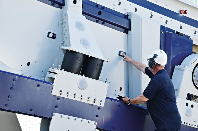 The system consists of up to eight wireless sensors that can be flexibly mounted with magnets to all vibrating screening machines. It can be used both on Haver machines and other brand name machines as well.