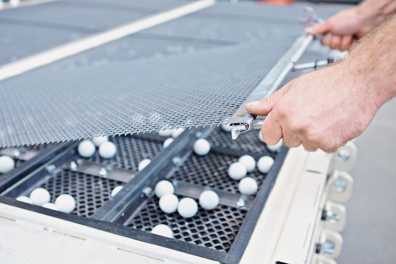 Depending on the design, the multiple-deck screening machine has a vast screen surface (58 m²) while at the same time is characterized by its space-saving feature. In modular design the individual screen frames are horizontally stacked above each other and serve to act as the frame of the machine. The ability to later adapt the machine, e.g. in order to increase material throughput, is an advantage of this design.