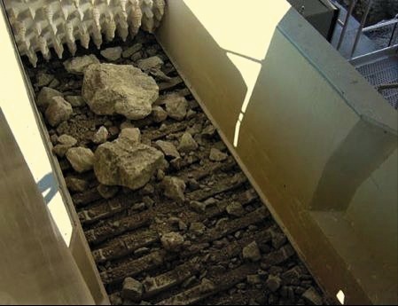 The clay crushing plant is designed for a capacity of 300 t/h to produce a final product of 0–90 mm. It operates on the principle of breaking in the horizontal flow of material with a feeder breaker (Figure). The material is fed by a chain conveyor nearly horizontal to a one-roll crusher (feeder breaker). A bunker or concrete foundations are not required.