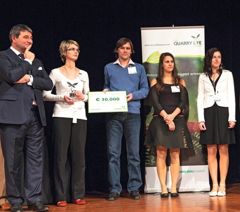 With the Quarry Life Award, HeidelbergCement has established a competition at international level, with the aim of discovering new ideas for the promotion of biodiversity at quarry sites. More than 300 projects from 18 countries were submitted to this year’s competition. In autumn 2012, following a practical research phase of the 80 best projects, three winners were decided per country as well as the three global award winners. The three best projects in the individual countries received monetary awards of 1500 €, 3000 € and 5000 €; the three winners of the international competition were awarded 10 000 €, 20 000 € and 30 000 €.