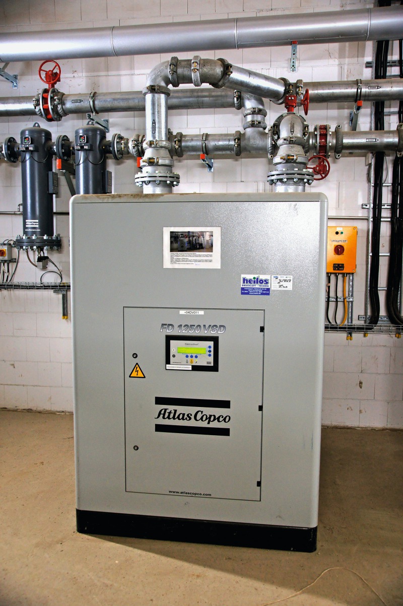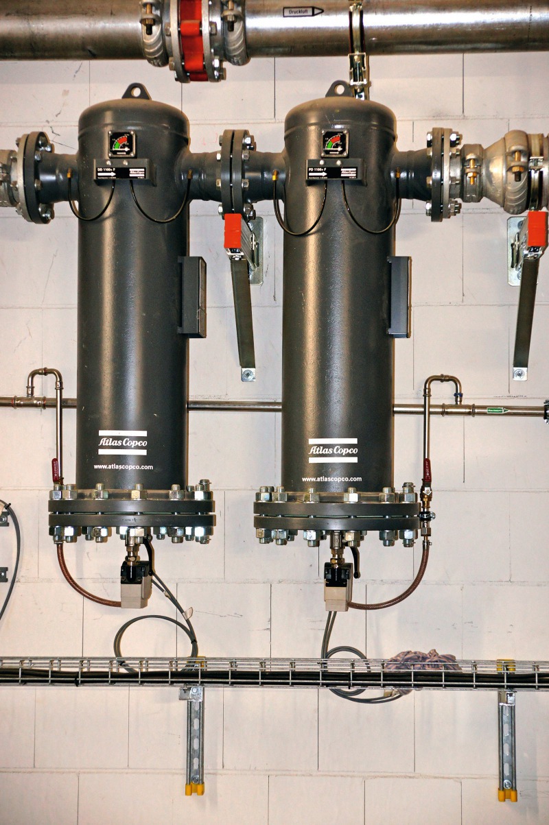 Already today, the plant is profiting from the savings thanks to an intelligent, season-dependent strategy for compressed air preparation. In the summer months, the compressed air passes through an active carbon and a fine dust filter as well as a refrigerant dryer before reaching the network with the required quality and necessary dew point. In the cold months of the year, the refrigerant dryer is replaced with a more energy-intensive adsorption dryer with downstream particle filter. This can ensure a lower dew point than the refrigerant dryer and prevents condensation getting into the compressed air lines when the temperature falls below zero.
