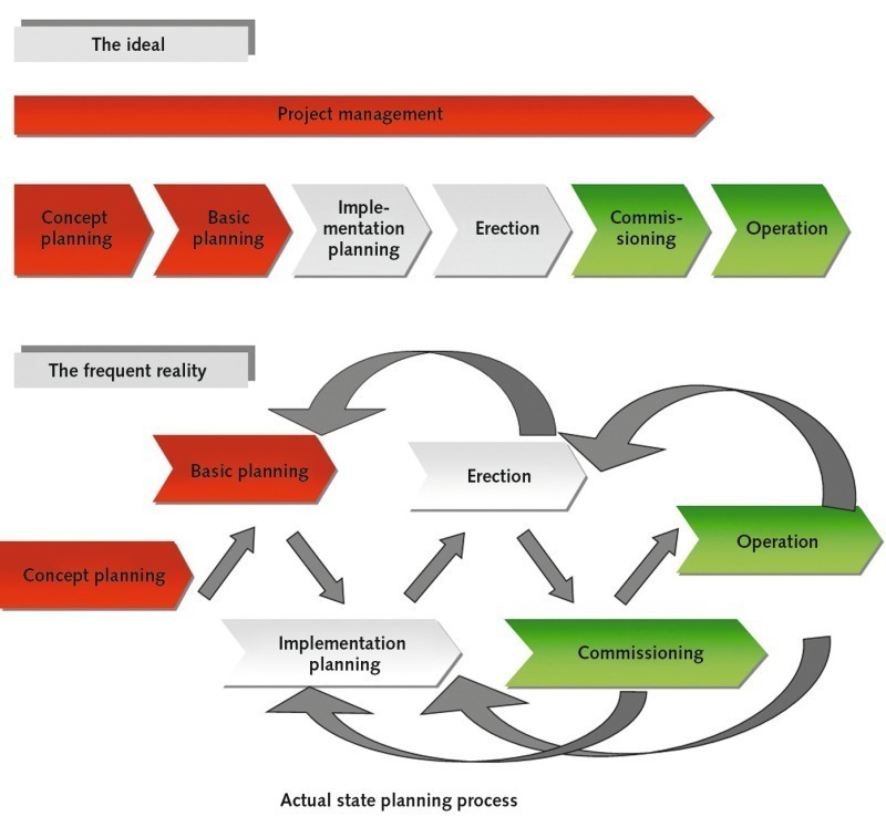 Nowadays, furthermore, companies’ decisions concerning the universal use of software are only rarely made centrally. If a decision in favour of an integrated solution using a monolithic system is nonetheless taken, the changeover will involve much work and complexity. It is scarcely possible to influence the solutions selected by external project partners, however. So, despite all efforts to the contrary, the software landscape will, in practice, always turn out to be heterogeneous. Interfaces will be needed at the latest when the time comes for linking to the control system.